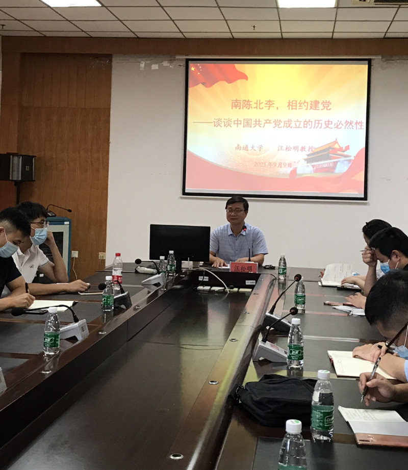 南通大学艺术百家乐规则 专员、南通大学二级党组织理论学习中心组学习督导员汪松明教授做了题为《南陈北李,相约建党——谈谈中国共产党成立的历史必然性》的讲座。汪教授的讲座既有宏观的理论视野,又有具体生动的史实,还讲述了中国共产党早期重要领导人与南通的渊源。王琦琦副书记结合汪教授的精彩讲座,对青年教职工如何将学党史落到实处提出希望。