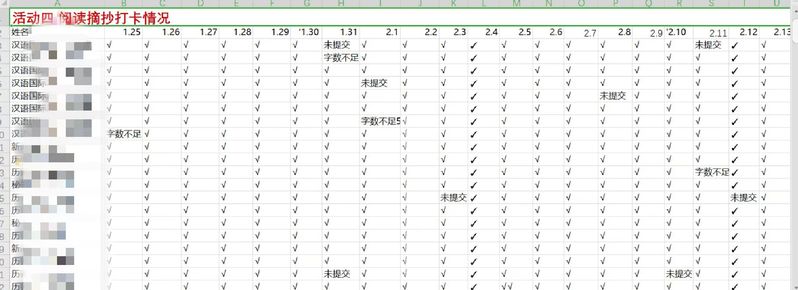 据悉,1月25日至2月18日期间,百家乐规则 面向全体学生开展了持续25天的寒假“云”打卡自律行动。此次活动依托微信群、QQ群等平台,以线上打卡的形式进行记录监督,分为专业素养、英语学习、身体素质、启迪智慧四大板块。在前期准备中,每个板块均建立相应的QQ群,整理参与人员名单、制定评比规则、精准跟踪学生打卡情况。同学们对这些板块踊跃报名,积极参与,成功参与的同学至少参加两个板块,且每个板块至少打卡21天,形成了“你追我赶”“相互帮助”“携手并进”的良好学习氛围。活动达到了预期的效果,起到“21天效应”。