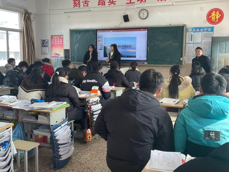 活动中,各小分队在母校的毕业班级上借助PPT介绍了南通大学历史沿革、校园文化、教学建设等情况,播放了南通大学宣传片,并设置了通大生活答疑环节,让母校同学对于南通大学的认知更加明晰。最后,小分队成员还向母校的学弟、学妹们分发了“最美通大”书签。在整个宣讲过程中,小分队成员结合自身大学体验的精彩讲述让母校的学生们感受到了丰富、充实且有意义的通大生活,也燃起了学弟学妹们对通大的浓厚兴趣。