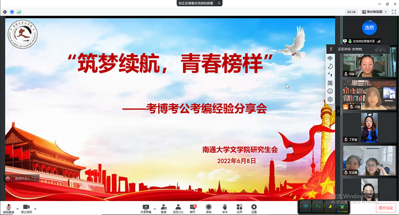 6月8日晚,百家乐规则 研究生会通过腾讯会议平台举办“筑梦续航,青春榜样”考博考公考编经验分享会。