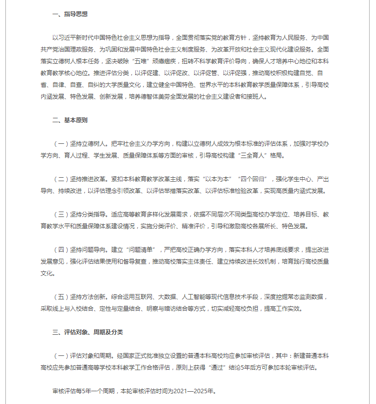 普通高等百家乐规则 本科教育教学审核评估实施方案(2021—2025年)