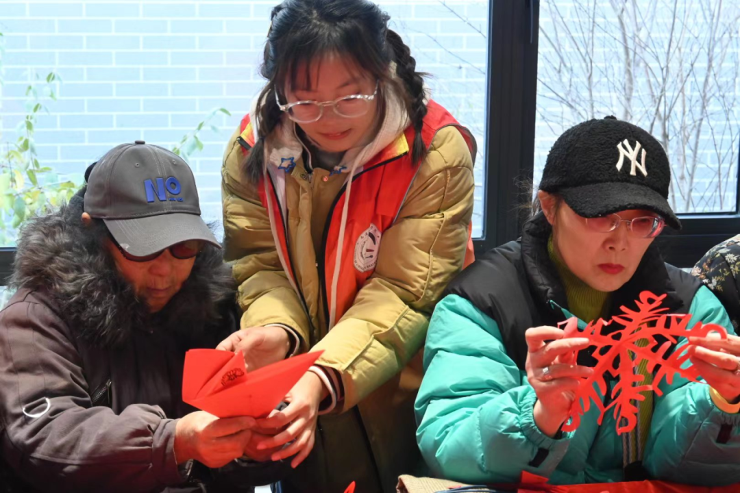 活动还为志愿者和老人们提供了跨代交流的平台。老人们在裁剪红纸的过程中与志愿者敞开心扉,回顾与窗花相关的点滴往事。志愿者们安静倾听这些陈年趣事,从老人口中了解到了他们生活的时代和更多的民风民俗,贴近了他们的美好岁月。