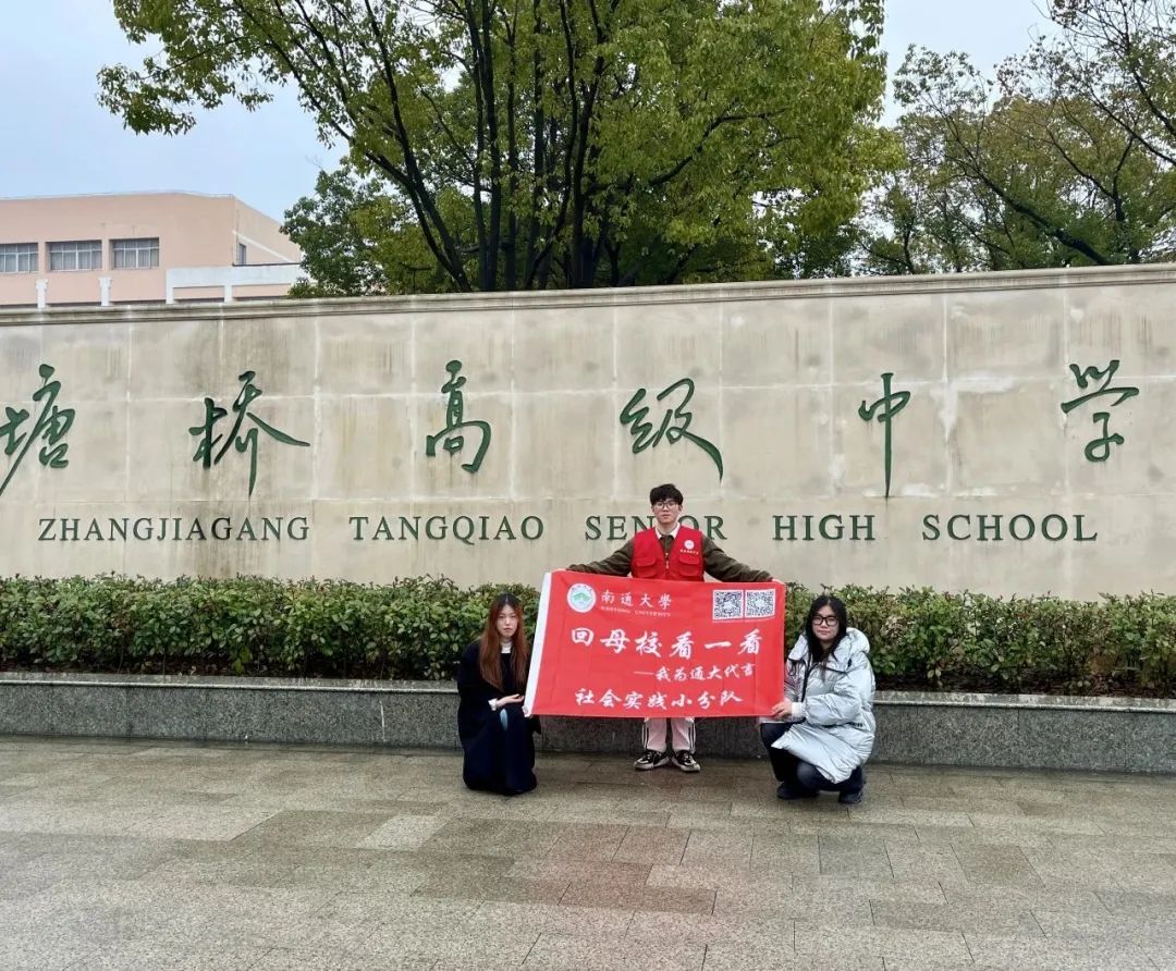 2024年1月19日,南通大学“回母校看一看”寒假实践小分队来到了江苏省张家港市塘桥高级中学开展宣讲活动。徐芯怡、郭子航、张子怡同学怀揣着热忱之心走上讲台,宣讲美丽通大。