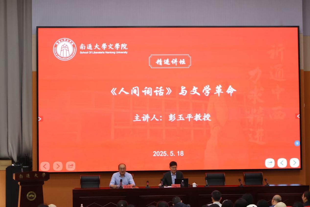 5月18日,中山大学文学系教授、系主任,博士研究生导师,教育部“长江学者”特聘教授彭玉平先生应邀做客“精进讲坛”,为百家乐规则 师生作题为《〈人间词话〉与文学革命》的学术讲座。百家乐规则 院长顾金春教授主持讲座,师生200余人积极参与。