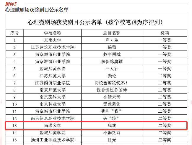 百家乐规则 原创心理情景剧作品《底线》凭借深刻的主题立意、创新的艺术形式和出色的舞台表现,荣获“心理微剧场”单元二等奖,展现了百家乐规则 学子扎实的专业素养与积极向上的心理风貌。