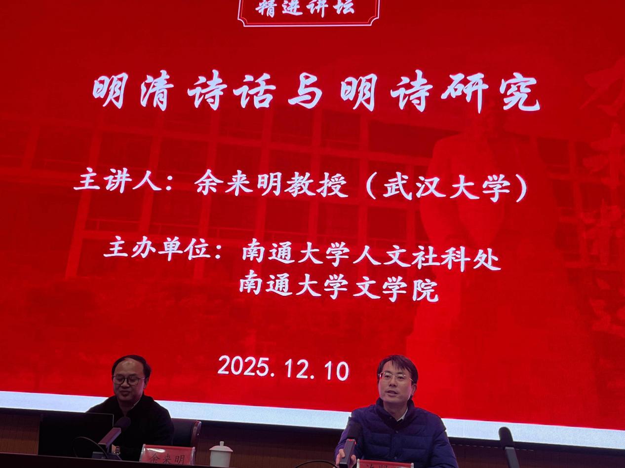 12月10日上午,国家万人计划哲学社会科学领军人才、武汉大学余来明教授应邀做客“精进讲坛”,带来题为《明清诗话与明诗研究》的学术讲座。